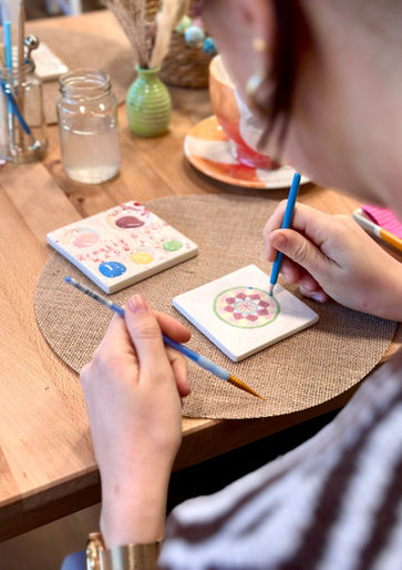Gestaltet eure Keramik in entspannter Atmosphäre. Getränke könnt ihr euch ebenfalls vor Ort aussuchen.